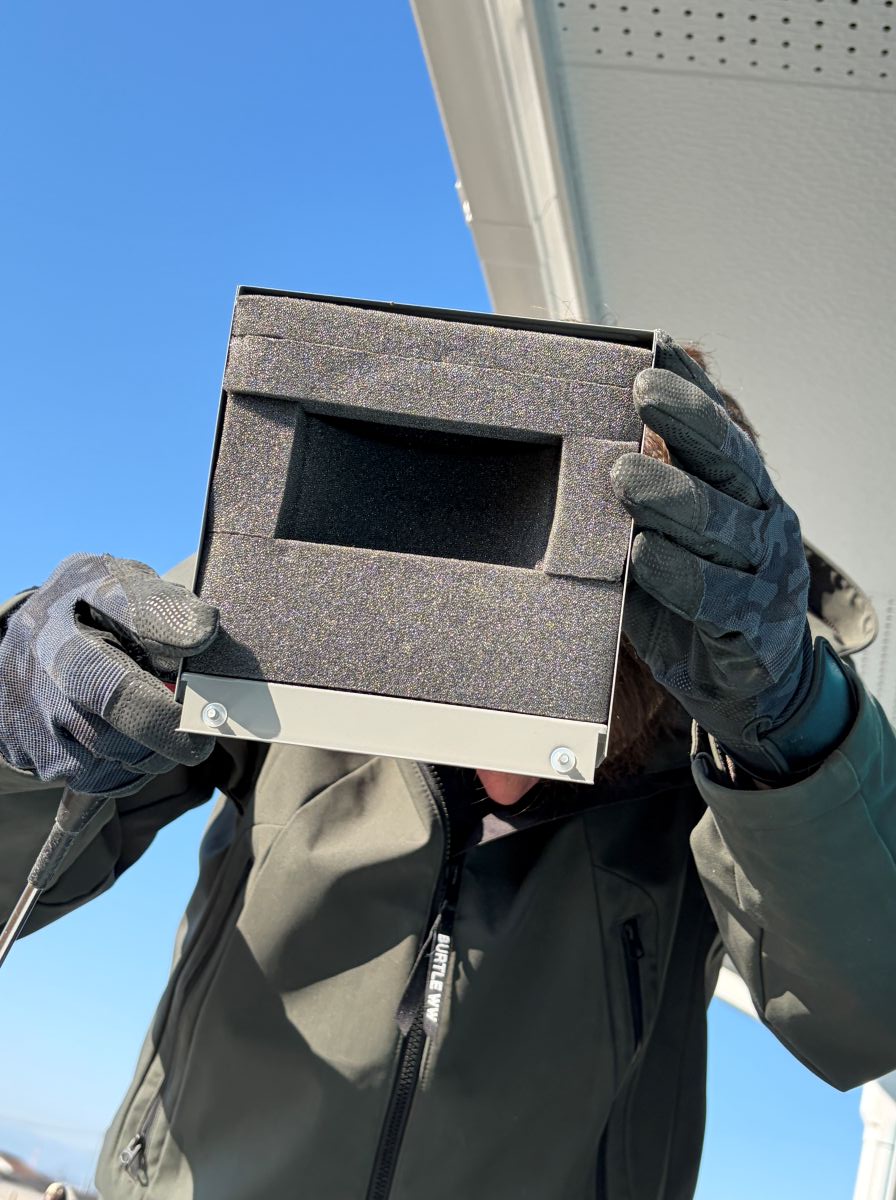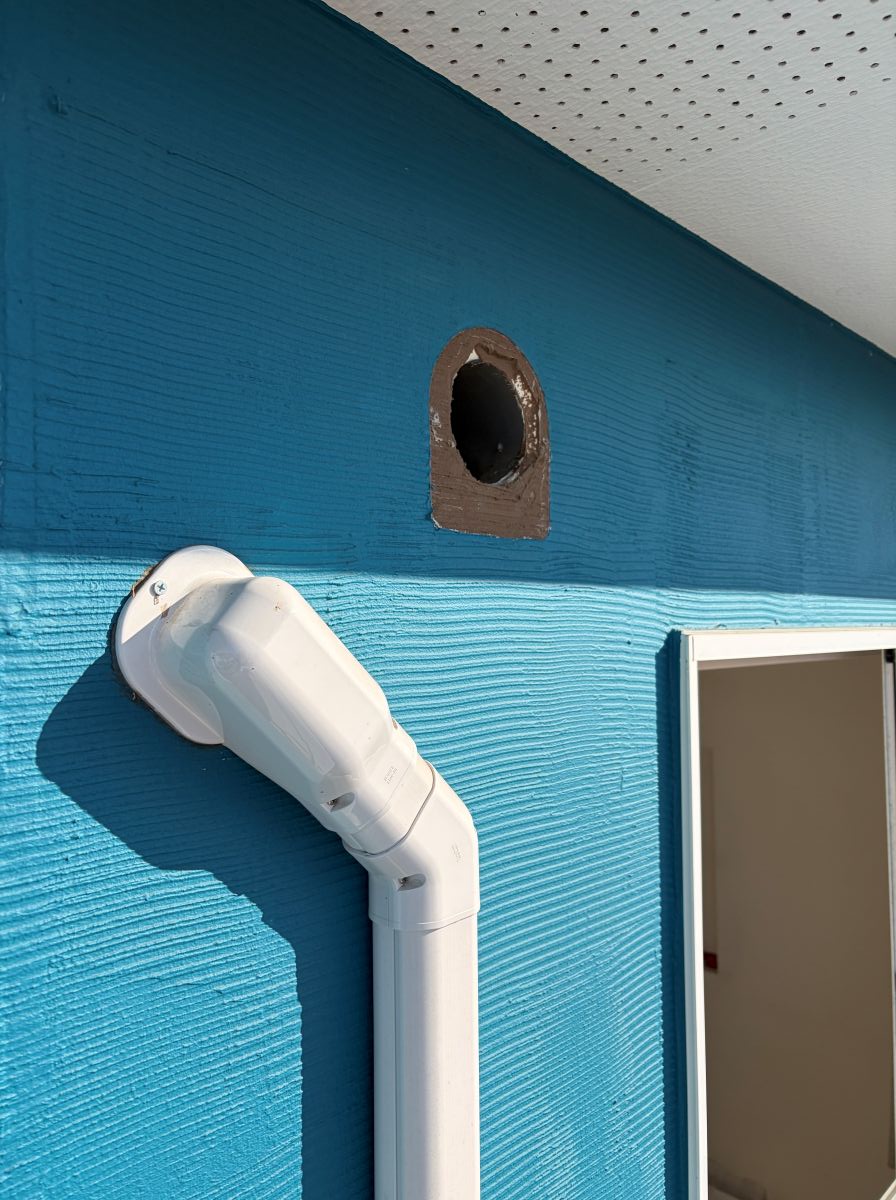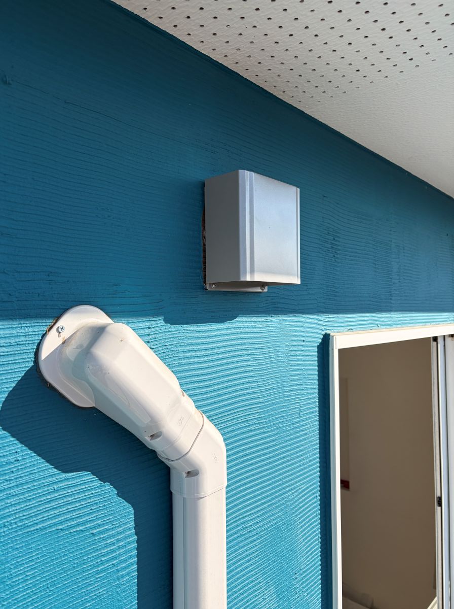 外壁につくベントキャップにも消音材のウレタンフォームが入っています。