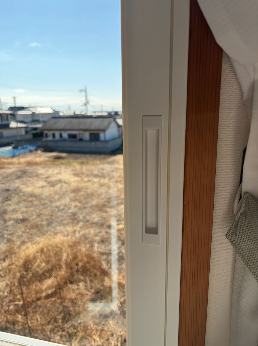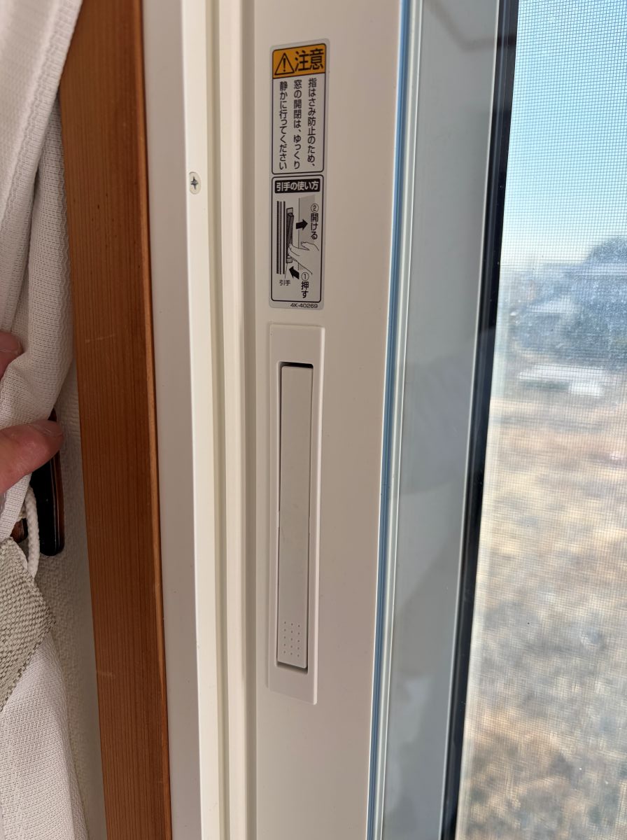 引戸の引手はストッパー付き安全引手。召し合せ(サッシが重なるところ)で指を挟まないようになっています。