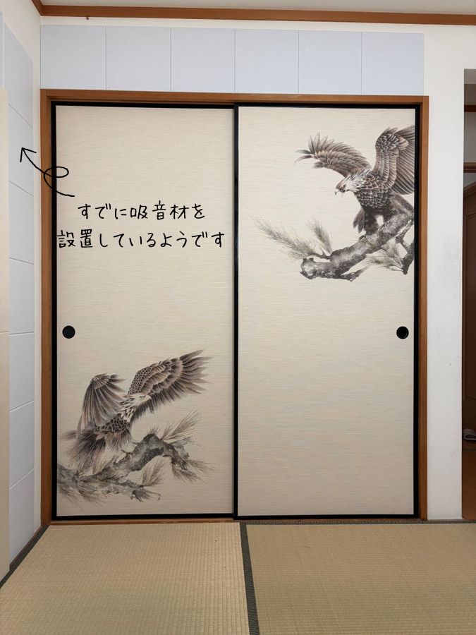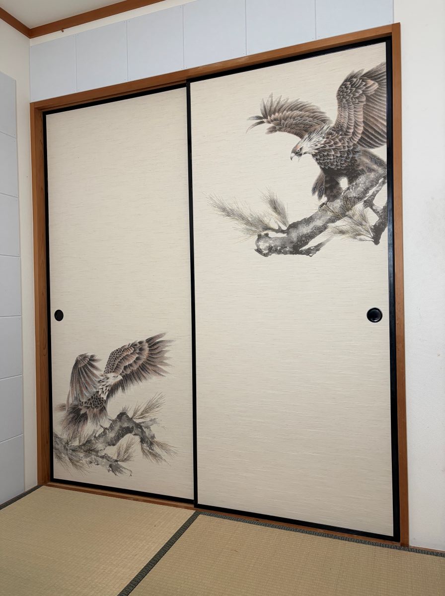和室の押入の襖も貼り換えました。鷹?鷲?セレクト渋めでカッコ良いです。